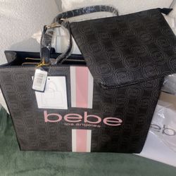 NWT Bebe Black Tote with Pink Stripes with Matching Wristlet Pouch 16 W x 13 H$50Fontana, CA
