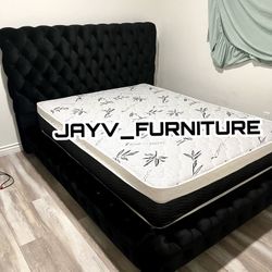 Queen Size Mattress Pillow Top And Bedframe Black Color $650La Habra Heights, CA