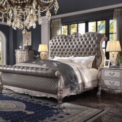 QUEEN BED FRAME PEARL WHITE SYNTHETIC LEATHER & GOLD PATINA FINISH (AC27814) $1799 FREE LOCAL DELIVERY $1,799Pomona, CA