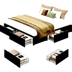 King Size Bed Frame with LED Light & Outlets USB Ports, Metal Platform Bed with Storage Headboard & 4 Large Drawers, No Box Spring Needed$160Upland, CA