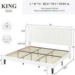 King Size Velvet Bed Frame/Vertical Channel Tufted Wingback Headboard/Upholstered Platform Bed/Strong Wooden Slats/No Box Spring Needed/Easy Assembly/$165Rancho Cucamonga, CA