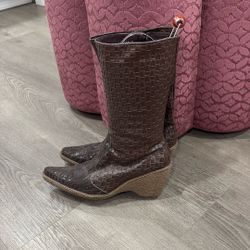 Women’s Brown, Leather Braided Boots, Pointed Toe, Snake Print Leather Lower Portion. Size 8, 8.5$20Norco, CA