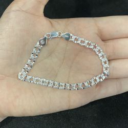 925 Sterling Silver Womens Mens Deck Pave Nugget Curb Cuban Link Bracelet 8”$150East Los Angeles, CA