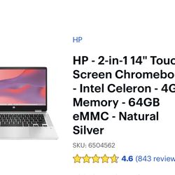 HP - 2-in-1 14" Touch-Screen Chromebook - Intel Celeron - 4GB Memory - 64GB eMMC - Natural Silver$170Garden Grove, CA