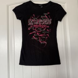GUESS Jeans Women’s Black Rhinestone Logo Graphic Tee Small Y2K Angel Wings (S)$15Los Angeles, CA
