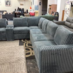 Sage sectional sofa plush comfortable corduroy fabric includes ottoman and accent pillows 99x99 $549La Verne, CA
