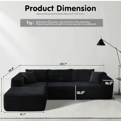 ✅️✅️2 pc black fur like wide welt corduroy sectional sofa with chaise✅✅$318Santa Ana, CA