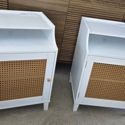2 White Rattan Night Stands with Charging Station New $75Fontana, CA