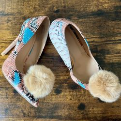 Charlotte Russe pom-pom stiletto heels multicolored snakeskin-patterned print$10Los Angeles, CA