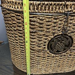 Oval Wicker Storage Basket with Lid, Metal Accent, Brown, 16x22x11 in$70Ontario, CA