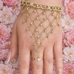 Avon Glamorous 2005 Vintage Hand Chain Ring Bracelet Gold Tone Rhinestone Fringe$30Lake View Terrace, CA