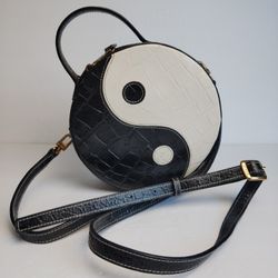 Staud Yin Yang Women's Round Moc-Croc Leather Black White Crossbody Bag $125Anaheim, CA