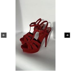 Saint Laurent Tribute Size 38 Red Leather Platform Ankle Strap Sandals$250Upland, CA