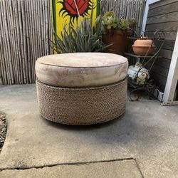 This vintage coffee table ottoman features a round base with a 30-inch diameter and a 12-inch height, wrapped in rope with a beautifully aged patina, $80Los Angeles, CA