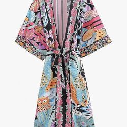 Vintage Floral Print Long Kimono Robes Belt Beachwear Bohemian Bikini Cover Ups Boho Kimonos$22Rancho Cucamonga, CA