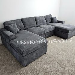 Beautiful! 3-pc Sectional Sofa With Storage Ottoman, Ivory , Grey, Dark Gray Or Black Corduroy $475Downey, CA