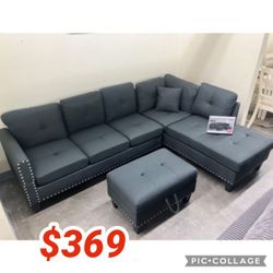 3 Piece Charcoal Sectional Sofa With Ottoman 98"W X 70"D X 34"H$369Long Beach, CA