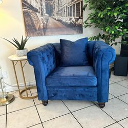 Modern Velvet Tufted Accent Sofa Couch Chair with Scroll Arms and Nailhead. (Blue)$199Downey, CA