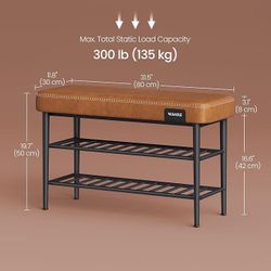 Shoe Rack Bench, Storage Bench for Entryway, Synthetic Leather with Stitching, Mid-Century Modern, Loads 300 lb, 11.8 x 31.5 x 19.7 Inches, Caramel Br$34Alta Loma, CA