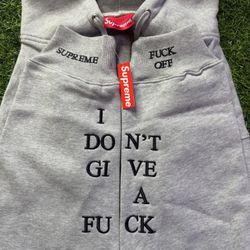 Supreme IDGAF Zip-Up Hoodie - Grey $400Los Angeles, CA