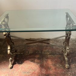 Antique Metal Bottom Glass Top Side Table - 24x17x17 $125Long Beach, CA