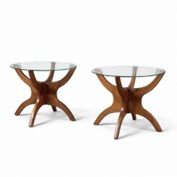 Two Round Wooden Bedside Tables With Storage, Pull Out Drawer And Marble Top$400Culver City, CA