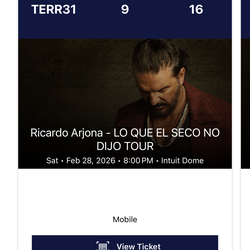 Ricardo Arjona Concierto Boletos$130Ontario, CA