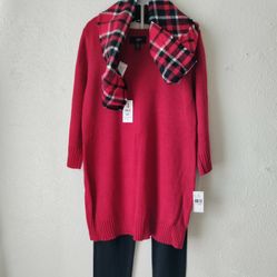 IZ Byer Girl 3pc Sweater Tunic / Legging Pant / Scarf Set Outfit Size XL (16) Red New$10Fontana, CA
