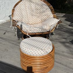 Vintage Rattan Swivel Chair And Stools With Glass Top Table$350Garden Grove, CA