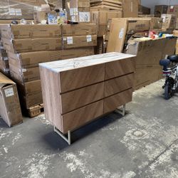 ⭐️Brand New Roomfitters Faux Marble Top Dresser for Bedroom with 6 Drawers, Mid Century Chest of Drawers, Modern Bedroom Dresser (Oak Wood)$300Brea, CA