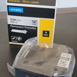 Dymo Industrial Rhino Labels 12mm x 5.5m 1/2"x18' Black on Clear Permanent Polyester (10 available)$10San Dimas, CA