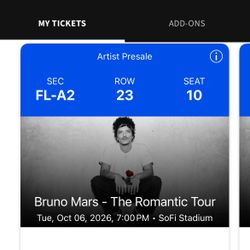 2x Bruno Mars Floor Tickets$2,800Los Angeles, CA