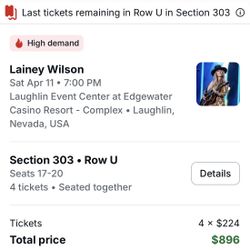 Lainey Wilson concert (4 Tickets)$896La Habra Heights, CA