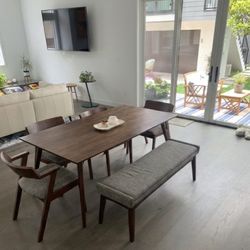 Walnut Dining Table, 4 Chairs, Bench ($2,000 Originally)$422Los Angeles, CA