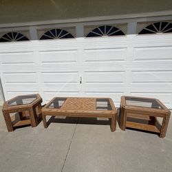 Vintage 90’s MCM Wooden Glass Top Coffee Table End Table Set$300Glendale, CA