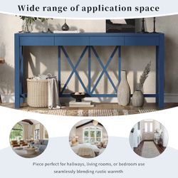 #135 60inchAcacia Veneer Console Table with 4 Spacious Drawers Modern Crisscross Design Entryway Table with Open Bottom StorageFarmhouse Sofa Table fo$120Chino Hills, CA