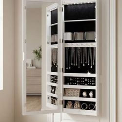 Door Wall Mount Touch Screen LED Light Mirrored Jewelry Cabinet Storage White$40City Of Industry, CA