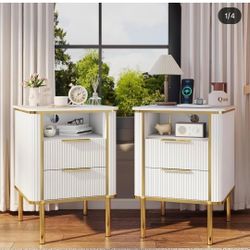 Night Stand Set 2: White and Gold Nightstand Set of 2 with Charging, Fluted Night Stands for Bedrooms Set of 2, Wooden Nightstand Set of 2 with Drawer$80Torrance, CA