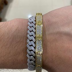 💎 VVS1 Moissanite Jewelry Bundle – Cuban Link & Nail Love Bangle Bracelets 100% Authentic | Real Silver | Certified | Handmade $750Santa Fe Springs, CA