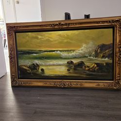 Vintage Ornate Gold Wood Frame With Beautiful Hand Painted Ocean Scene 58 Width 34 Height$500West Los Angeles, CA