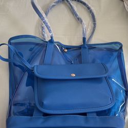 NWT Set of 2 Blue See Through Tote and Small Bag/cosmetic Bag$19Los Angeles, CA