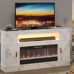 63 in. White Marble Freestanding Electric Fireplace TV Stand Fits TV Up to 70 in. Entertainment Center with Cabinet$165Anaheim, CA