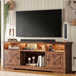 Tangkula LED TV Stand for 65” TVs, Sliding Barn Door Entertainment Center with Lights, Adjustable Brightness, Human Induction, Charging Ports & Adjust$200City Of Industry, CA