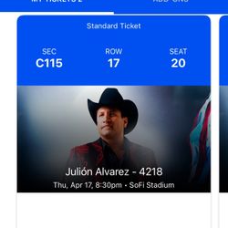 Julion Alvarez 4/18 Tickets Row 5$1,300Downey, CA