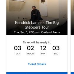 Ticket to Kendrick Lamar The Big Steppers Tour Oakland Arena Sep 1st$600Los Angeles, CA