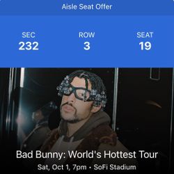 Bad Bunny 9/30 & 10/1 @ SoFi$1,300Los Angeles, CA