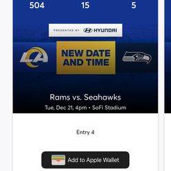 2 x Tickets Rams vs. Seahawks at SoFi Stadium$75Los Angeles, CA