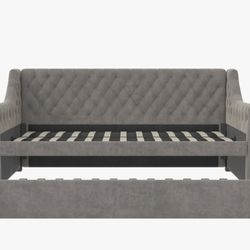 Sturdy gray bed frame with a nice Bamboo mattress. Frame has a slatted headboard and footboard. Mattress is clean. Good for a spare room or kid's room$350Santa Clarita, CA