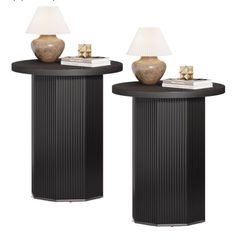 Round End Table, Farmhouse Pedestal Side Table, Fluted Wooden Nightstand Drink Stand for Living Room, Bedroom (2, Black)$99East Los Angeles, CA