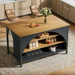 Kitchen Island with 3 Storage Shelves, 55" W Kitchen Island with Large Countertop and Seating Area, Modern Wooden Kitchen Island, Brown and Black$169Downey, CA